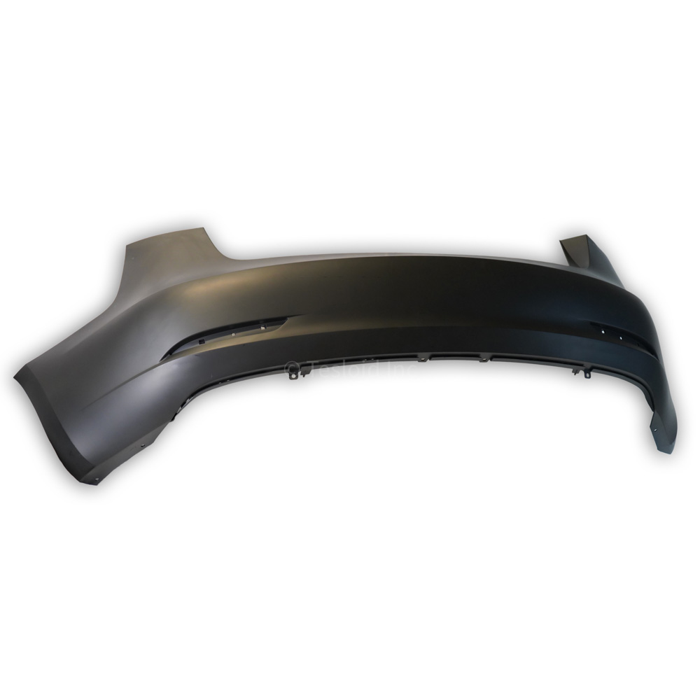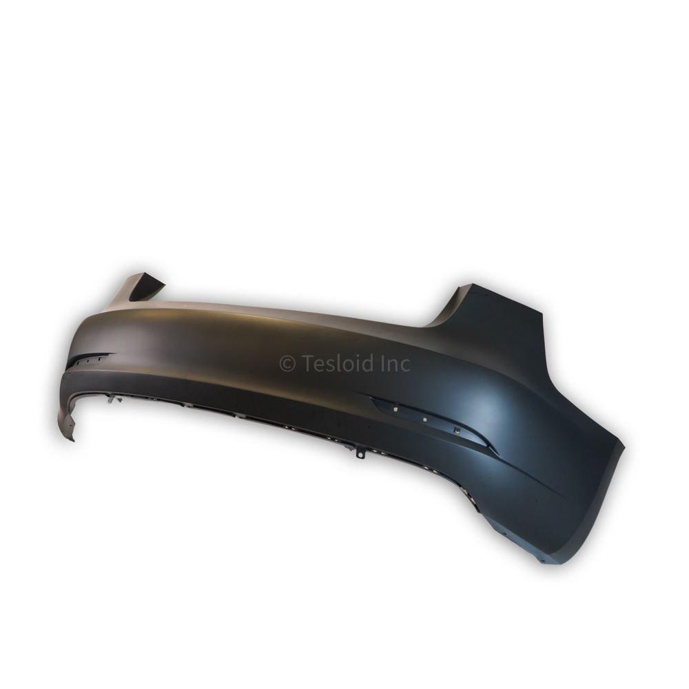 Tesla Model 3 Rear Bumper without parking sensor holes. This part goes in the rear outermost part of the Model 3. Starting in early October 2022, Model 3s are no longer built with ultrasonic sensors. This item ships un-folded.